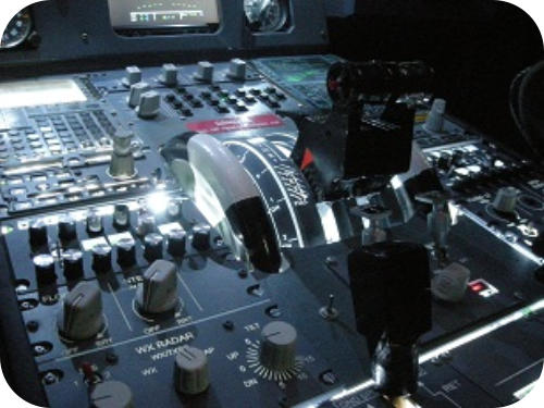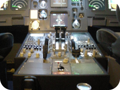 Neben den Schubhebeln werden hier die Landeklappen und Spoiler (Störklappen)