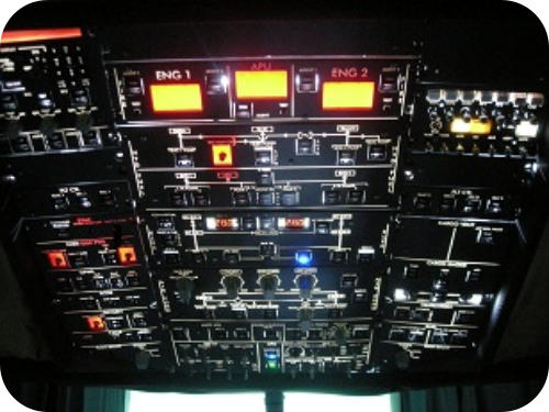 und die beiden Flight Management Computer (genau: die MCDU) untergebracht..