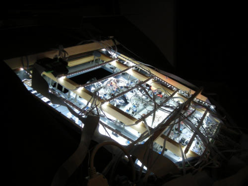 Overhead von oben gesehen. (Rückseite)Gut sichtbar ist hier die Hintergrundbeleuchtungmit LED- Strips.