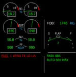 Monitor2= MCDU, 2x Radio (COM/NAV),Transponder, Analoginstrumente